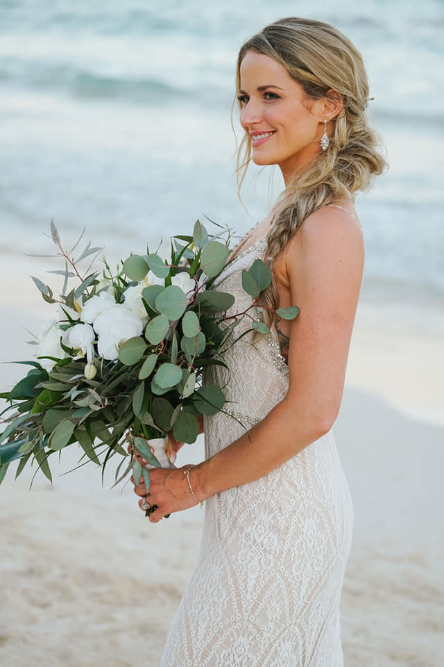 Beach waves are always the perfect look for a Caribbean wedding! Beautiful effortless curls that look natural and luscious. This weddings trends paired with a boho braid will always be the perfect look for a Tulum beach wedding. The braid or a headpiece will help keep your hair out of your face for the photos and will look glam and relaxed.